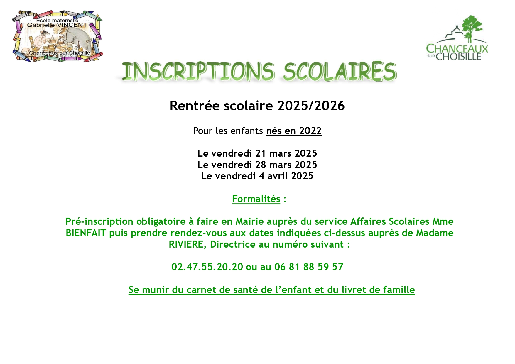 Rentrée scolaire 2025 - 2026 Inscriptions scolaires Ecole maternelle Ecole élémentaire Pour en savoir plus, cliquez ici